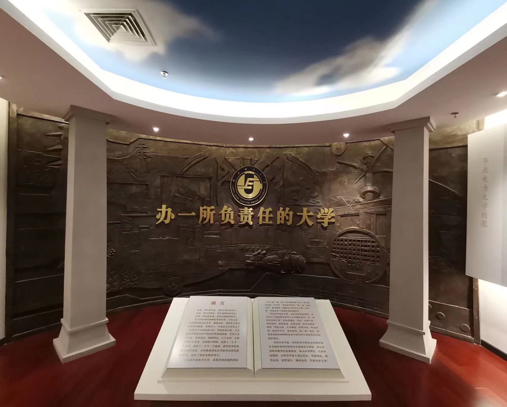 进入校史馆,同学们跟随智能讲解机器人小电参观展览。首先映入眼帘的是“办一所负责任的大学”九个大字。小电讲解道:leyu乐鱼官方网站始终秉承“办一所负责任的大学”的办学理念,始终坚持在服务国家、服务行业、服务人民中践行社会责任。接下来以leyu乐鱼官方网站的发展时间轴为线索,为同学们详细介绍了我校校史。从北京电力学院,河北电力学院,再到华北电力学院,难忘的场景形象再现,让同学们深刻感受到了母校在困境中诞生,在曲折中前行,在奋斗中崛起,在发展中辉煌的荣光岁月。从建校初期的筚路蓝缕、开基立业,困难时期的命运多舛、辗转流离,到改革开放以后的艰苦创业、发展壮大,几代华电人走过了一段极不平凡的创业兴校、跨越发展之路。这一系列筚路蓝缕的艰辛历程,淬炼出华电人矢志不渝的崇高理想,激励着一代又一代的华电人砥砺前行,奋发图强。