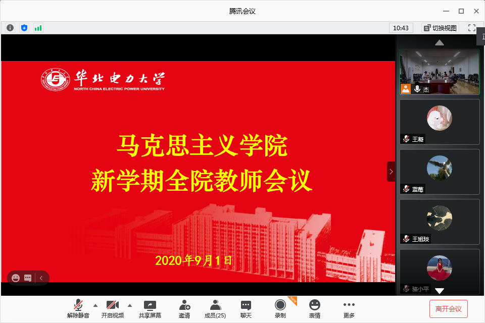 党总支书记孙平就新学期疫情防控工作做了部署,强调了授课纪律。他指出:一、要把疫情防控安全放在第一位。全院教师要严格落实学校相关文件要求,要在开学前做好疫情防控、核酸检测、物资储备等工作,开学后要坚持做到体温每日三次监测并上报,要坚持做到“非必要不出京”的要求,确有必要离京一定要按照程序要求请假。学院各教研室、科室要有应急处置机制,坚持做到排查到位、管控到位、督导到位、宣教到位。二、要把教学纪律放在第一位。思政课教师在课堂上要高度注意课堂纪律,重视课堂纪律。在教学内容、观点上要有较高的政治站位以及深刻的政治认识。针对不同的授课对象要及时转换授课内容和授课方式。在课堂之外,思政课教师也要有较高的政治意识。三、要把师生满意度放在第一位。不仅要使老师对于其工作有较高的满意度和获得感,保持积极的工作状态,及时提出对于思政课教学的意见和建议,同时还要保证学生在思政课教学中的获得感和满意度,及时与学生沟通,不断丰富思政课教学的内容和形式,提高思政课的教学质量,推动马克思主义中国化最新成果“入脑入心”。