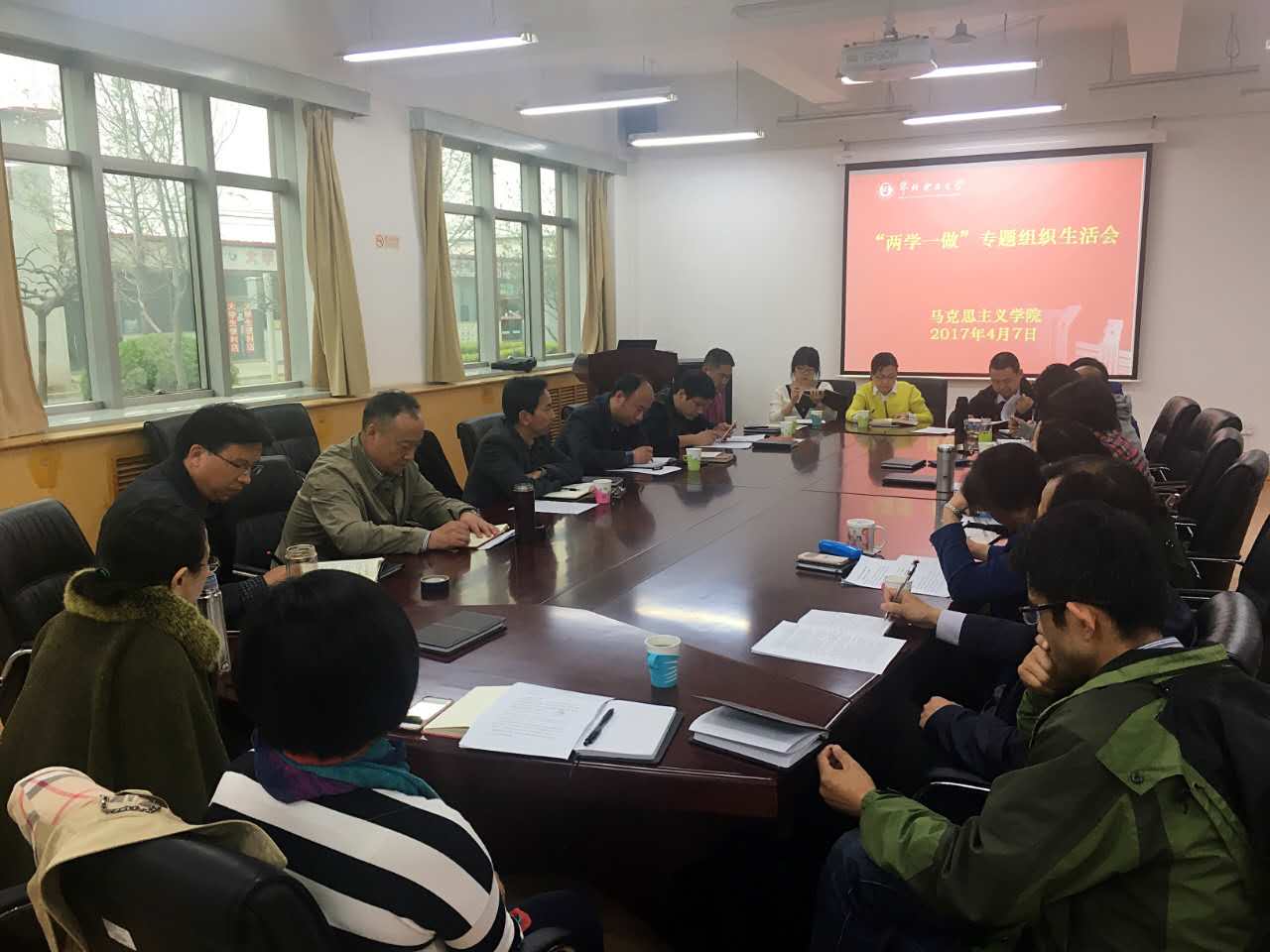 4月7日上午,leyu乐鱼官方网站教师党支部在教三A111召开 “两学一做”专题组织生活会,校党委副书记、纪委书记何华及马克思学院全体教师党员参加了本次会议。会上,大家开展了批评和自我批评,并提出下一步整改措施。会上,何华书记作了精彩的点评,充分肯定了各位老师的思想认识,希望定期检查自身问题的改进情况,并对leyu乐鱼官方网站今后的工作提出要求。