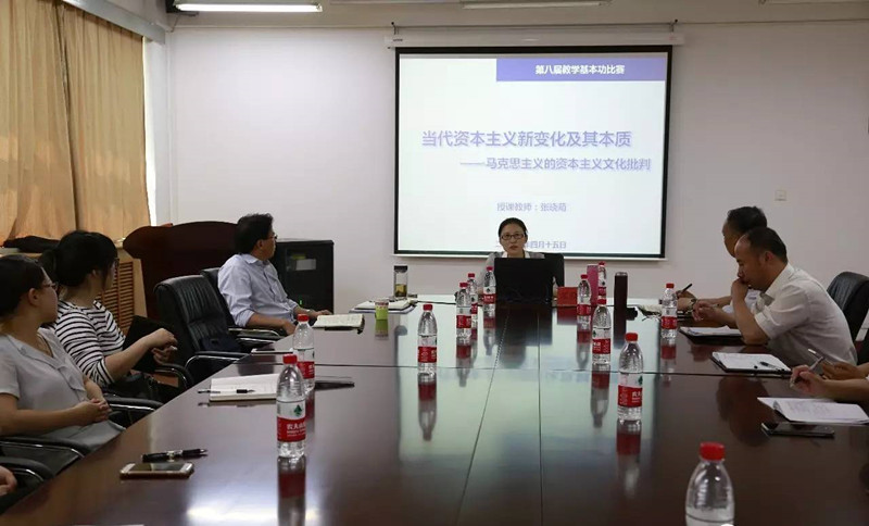 张老师还特别做了题为《当代资本主义新变化及其本质——马克思主义的资本主义文化批判》的教学获奖作品展示。她通过现代社会的文化现象为导入,在三个方面对资本主义文化批判进行了阐述——技术理性:物化与单向度的人;消费社会:需求与欲望的膨胀;大众传媒:精神的放逐与狂欢,并就选题、课件设计和授课方法方面给出了经验分享。她通过案例导入,课件制作简洁大方、生动,层次分明,逻辑清晰,用马克思主义经典文献深入浅出呈现出思政课原理的学术性。
