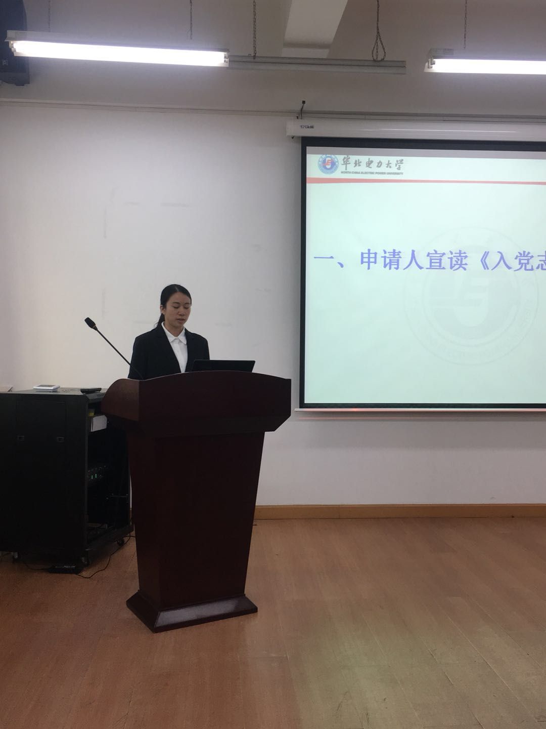 会议在庄严的国歌声中正式开始,申请人王茜和曹艳宣读《入党志愿书》,两位同志分别从自己的思想、工作、学习等方面汇报了自身情况,并表明了拥护党、忠诚党的决心。