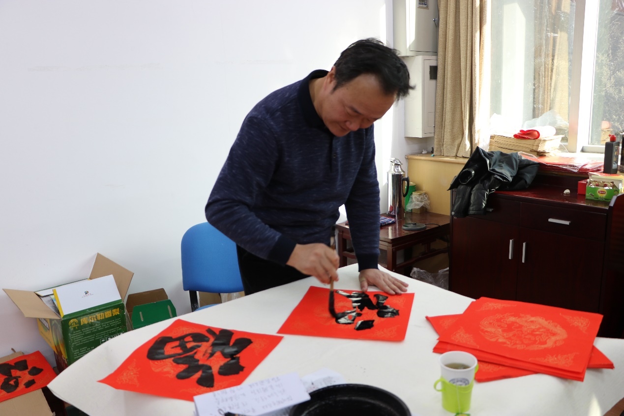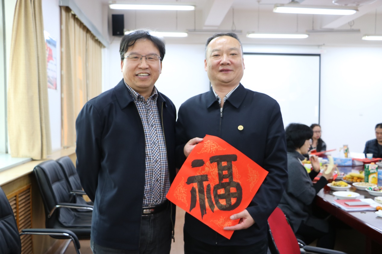 院长孙平与学院党总支书记蔡利民为全体师生赠福。