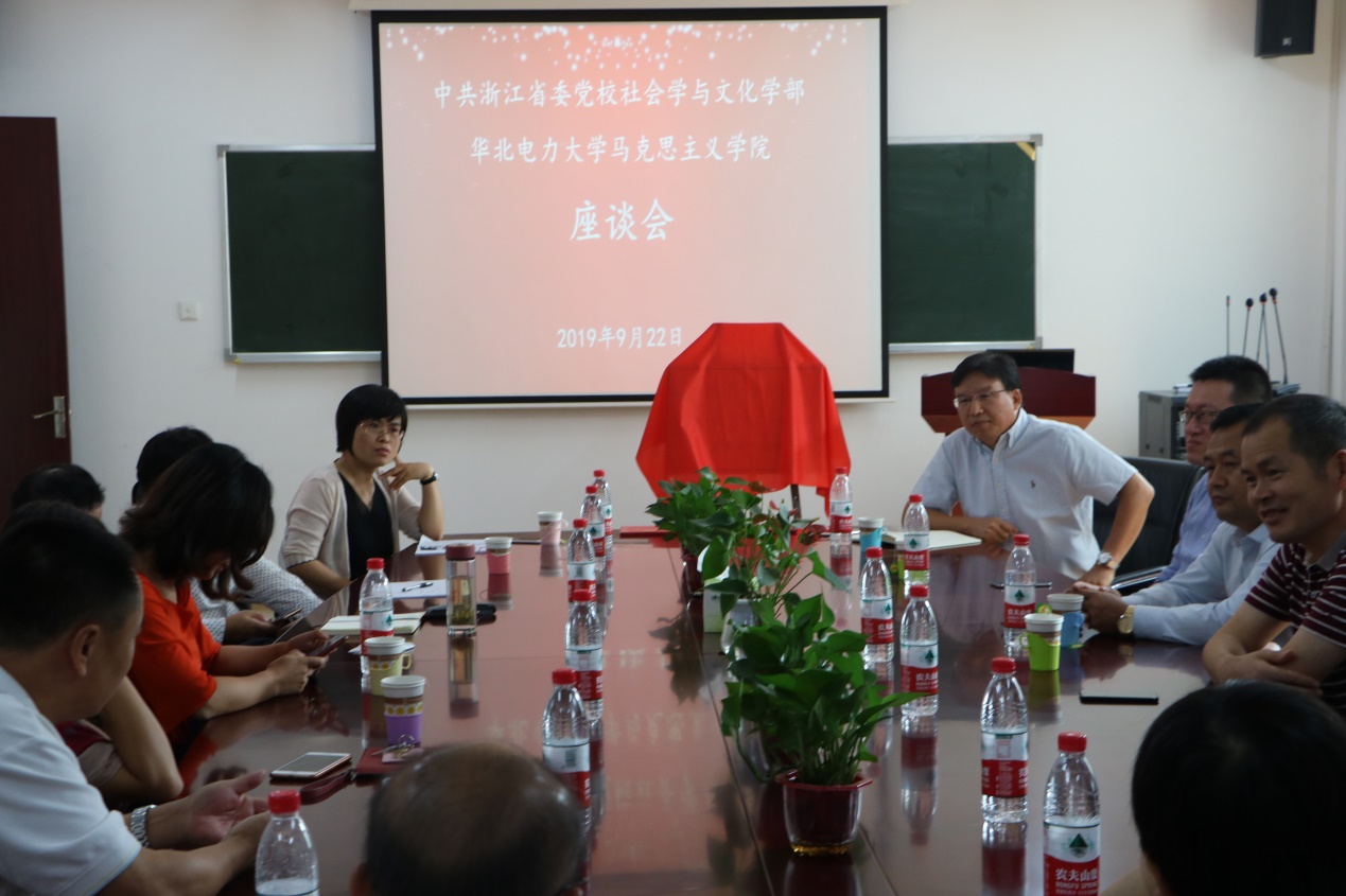 参加本次仪式和座谈会的有:中共浙江省委党校社会学部与文化学部主任李涛教授,浙江省委党校MSW教育中心副主任葛亮博士,浙江省嘉兴市秀洲区委党校党委书记、常务副校长杜建新教授。leyu乐鱼官方网站副院长孙平,副院长副书记侯丹娟,leyu乐鱼官方网站(保定)院长王聚芹,leyu乐鱼官方网站(保定)大数据研究中心主任王建红,马克思主义中国化协同协创中心执行主任骆小平参加。宁阳、黄晓霓、白冶钢、周作芳、王旭琰等多位教师和全体2019级硕士研究生。此次大会由孙平副院长主持进行,共有三项议程,分别为:双方就相关合作问题展开座谈会;“中共浙江省委党校马克思主义理论一级学科北京”揭牌仪式;“leyu乐鱼官方网站马克思主义中国化协同创新中心特聘研究员”聘任仪式。