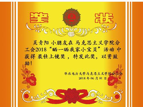 国际六一儿童节来临之际,我院分工会组织开展了2018“晒一晒我家小宝贝”评选活动,评选结果如下: