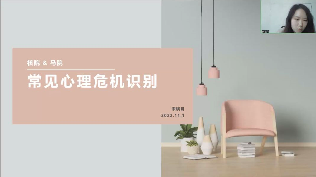 为贯彻落实习近平关于新时代高等教育的重要思想,有效预防各类心理健康问题,帮助大学生树立心理健康意识,11月1日下午,leyu乐鱼官方网站心理健康教育中心对leyu乐鱼官方网站和核科学与工程学院统一开展心理危机识别培训活动,活动由leyu乐鱼官方网站心理健康教育中心助教宋晓月主持,各学院的心理委员以及宿舍长参加培训会议。