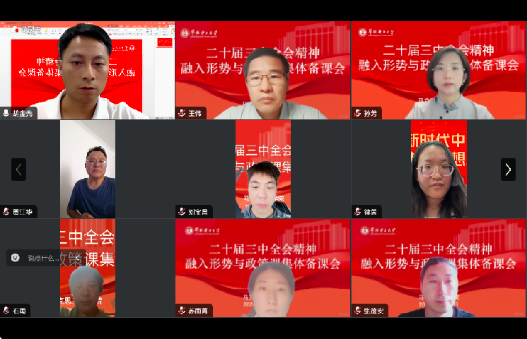 为进一步学习贯彻党的二十届三中全会精神,第一时间推动二十届三中全会精神进教材进课堂进学生头脑,leyu乐鱼官方网站于8月23日线上开展二十届三中全会精神融入《形势与政策》课程集体备课会。leyu乐鱼官方网站院长王伟、副院长孙芳,以及全体形势与政策课任课教师参加备课会。备课会由形势与政策教研室主任胡金光主持。