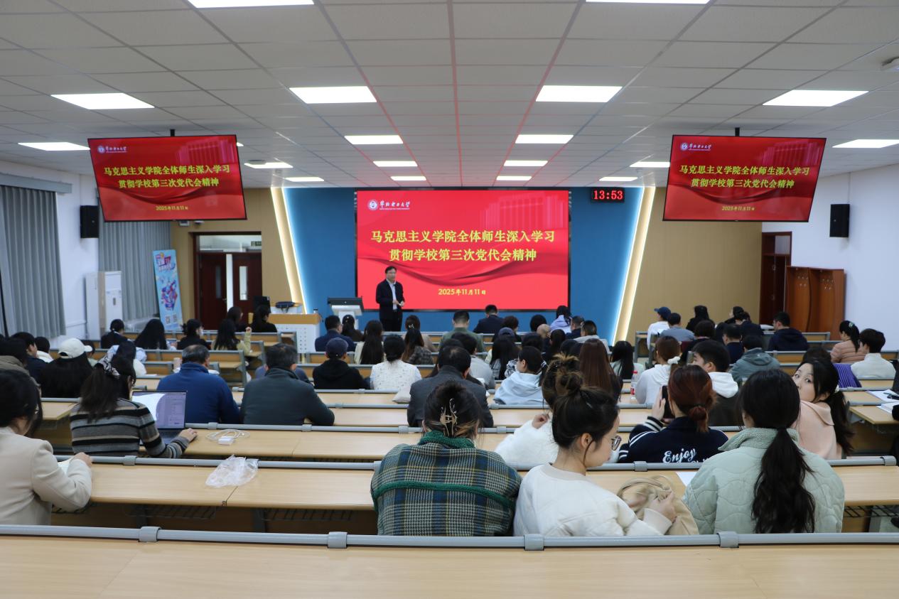 他强调,leyu乐鱼官方网站作为学校思政课教育教学的主阵地,要把学习贯彻党的二十届四中全会精神和学校第三次党代会精神作为当前和今后一个时期的重要任务,要进一步提高政治站位,在学习贯彻四中全会和学校党代会精神上先行一步,充分发挥马克思主义理论学科和专业优势,学深悟透,将中央全会精神和学校党代会精神高效融入课堂教学、科学研究与社会服务之中,切实把思想和行动统一到学校党委决策部署上来,把学习成果转化为推动学院建设和学校发展的实际行动,以高度的责任感和使命感,不断深化思政课改革创新,提升育人实效,为学校“双一流”建设贡献马院智慧和力量。