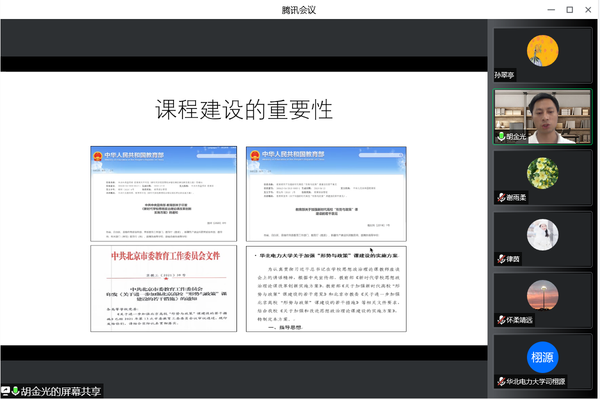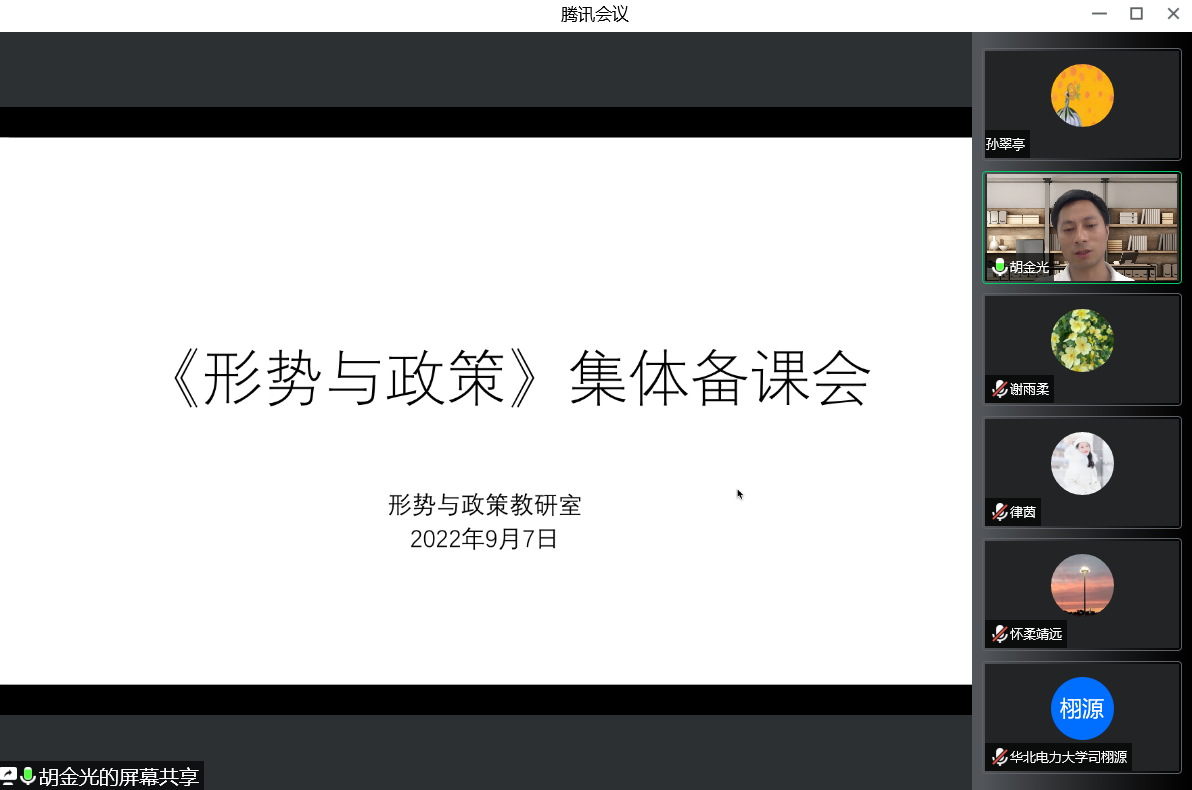 为进一步提升“形势与政策”课教学质量,2022年9月9日,形势与政策教研室举行线上集体备课会,33名“形势与政策”课专兼职授课教师参加。会议由教研室主任胡金光主持。