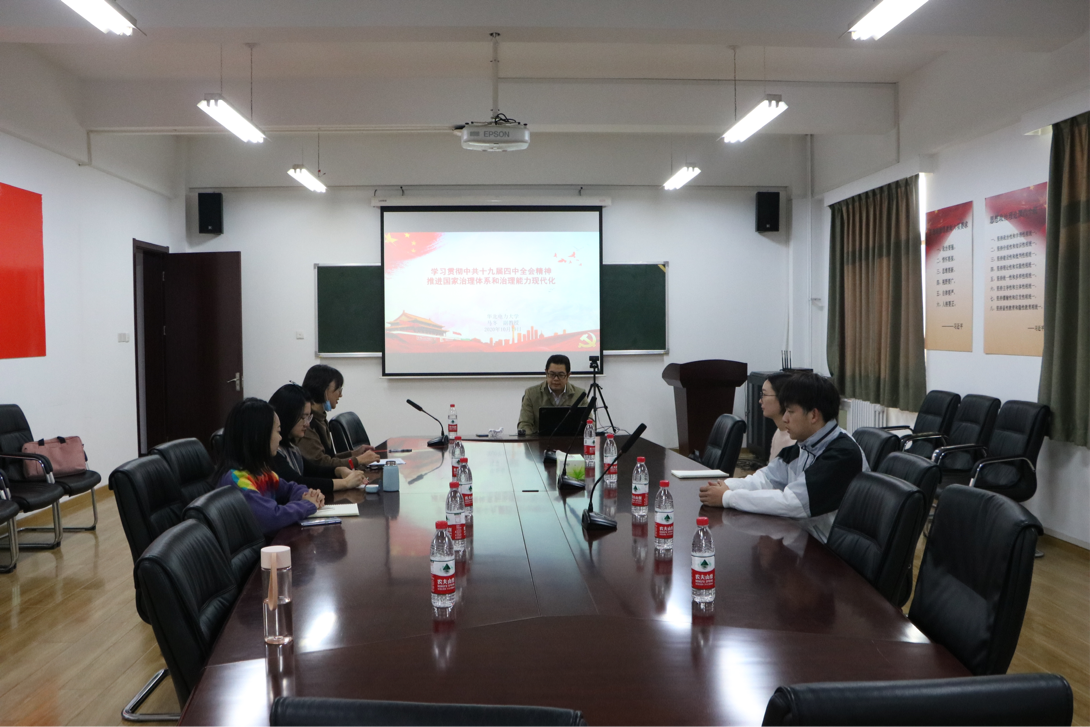 10月19日上午,leyu乐鱼官方网站在教三C220开展入党积极分子党课培训活动。特别邀请到外国语学院党委副书记马冬老师作题为《学习贯彻中共十九届四中全会精神,推进国家治理体系和治理能力现代化》的讲座。本次活动由院研究生党支部书记刘彩霞主持,全体入党积极分子参加。