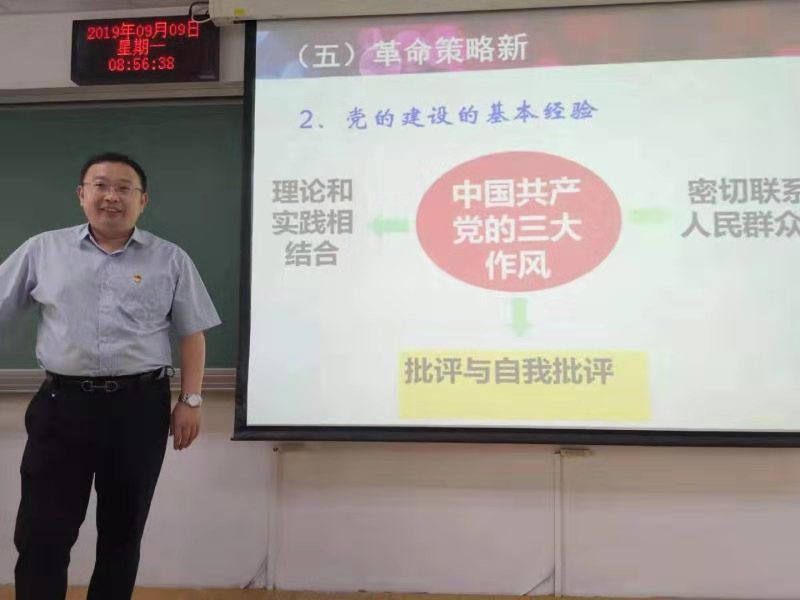 自从“不忘初心”主体教育启动以来,早在开学的9月第一天开始,leyu乐鱼官方网站概论与纲要党支部一共12名党员教师,全部戴上党徽进课堂,上思政课。戴党徽体现了党员教师在本职岗位上不忘初心的具体行动。小小的举动,但意义重大。