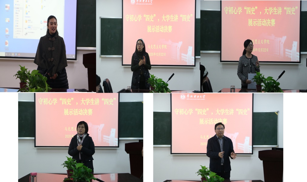为深入贯彻落实习近平总书记对广大青年学习先进理论的要求,鼓励青年学子广泛开展“四史”学习,进一步激发对学习“四史”的热情性和积极性,在宣传部和校团委的协作下,leyu乐鱼官方网站于12月22日18:30在教三C220举办大学生讲“四史”展示活动决赛。出席此次活动的有leyu乐鱼官方网站党总支书记孙平,校团委副书记盖姝,leyu乐鱼官方网站副院长侯丹娟,leyu乐鱼官方网站教师吴宁宁、蔡洁。