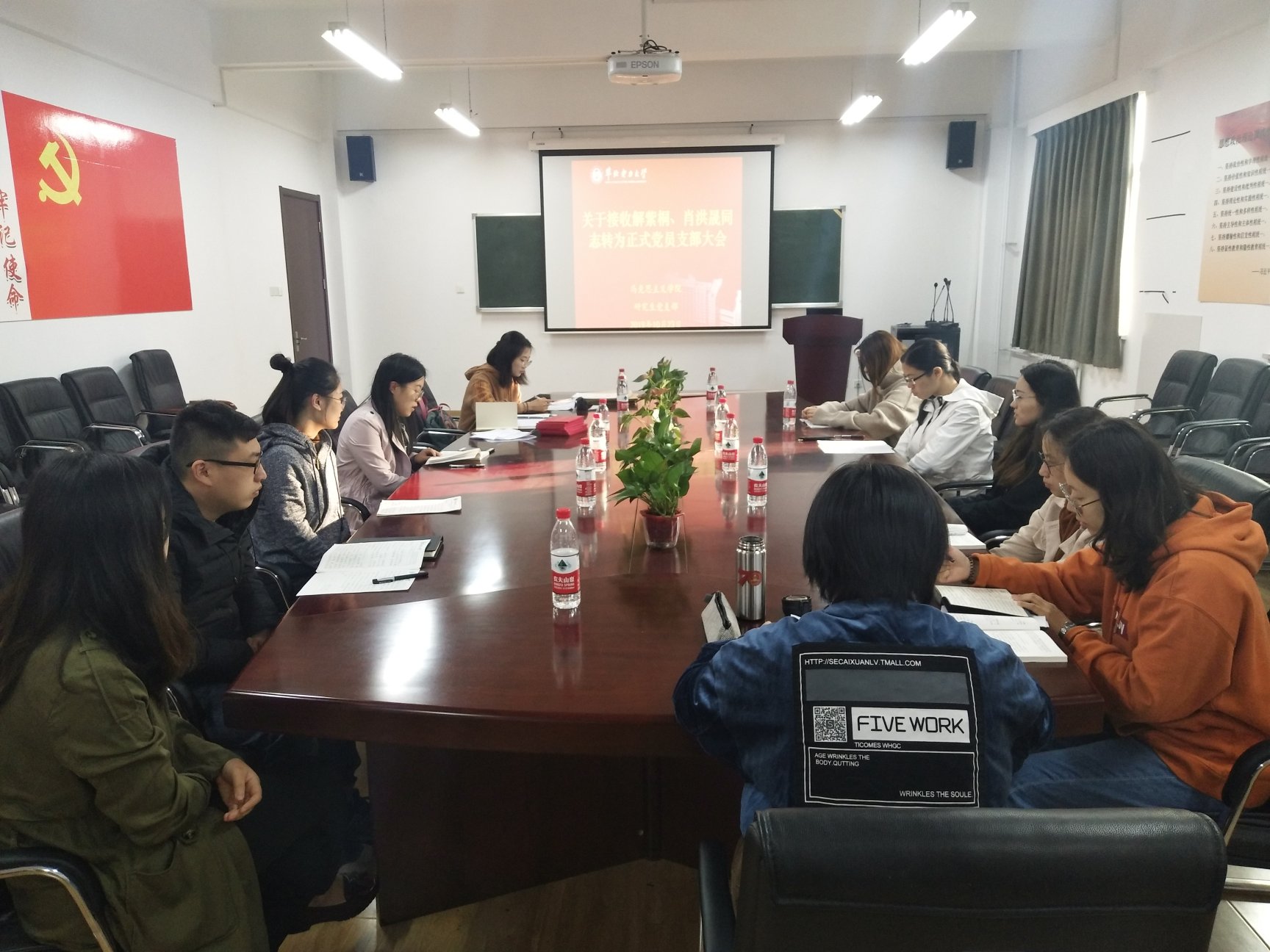 研究生党支部召开关于接收解紫桐、肖洪晟同志转为中共正式党员支部大会