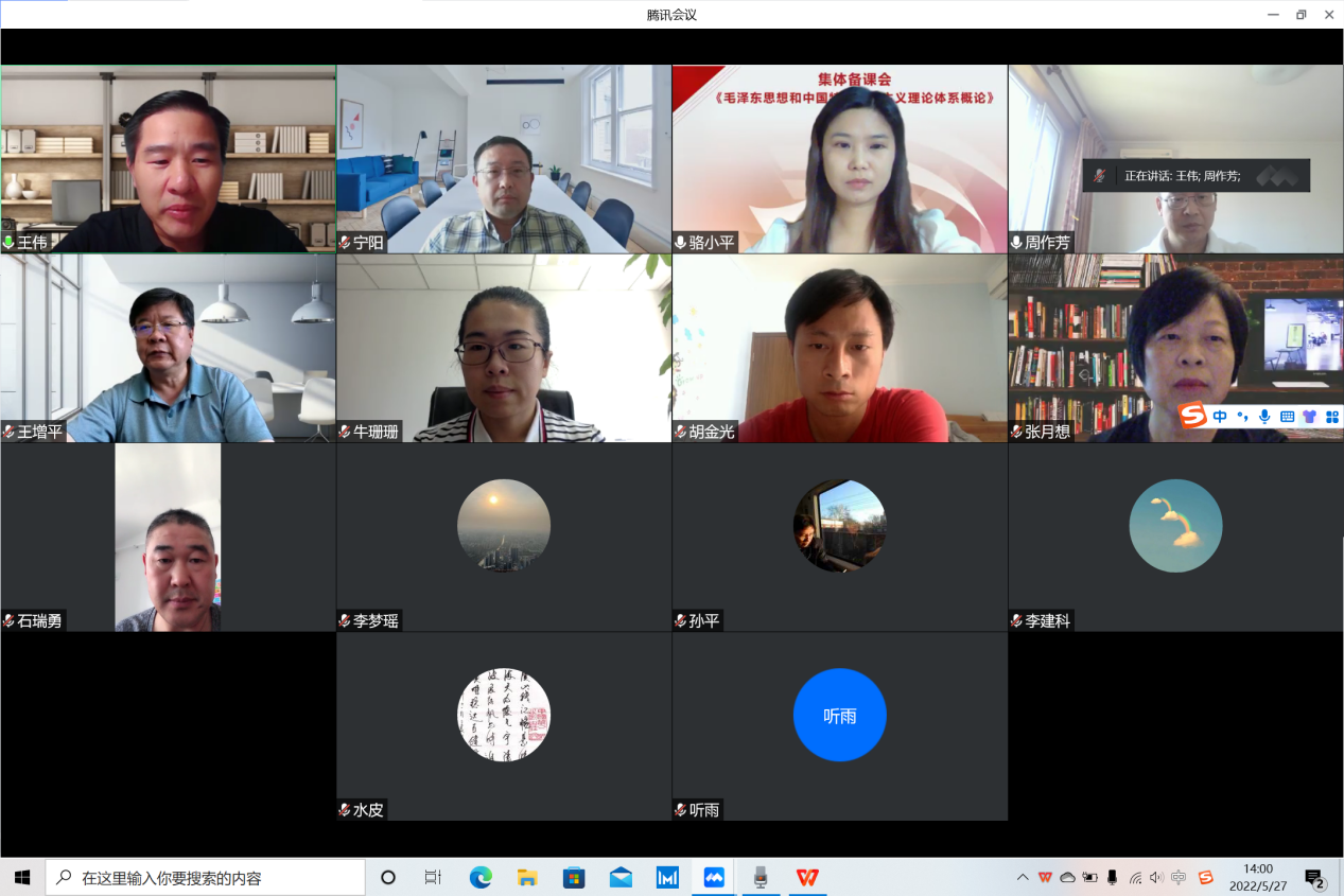 为进一步提升思政课教师教科研能力和水平,促进思政课的科学性和学理性,全面提升思政课教学质量,5月27日,《毛泽东思想和中国特色社会主义理论体系概论》课教研室通过线上平台召开集体备课会,学校副校长王增平出席备课会并讲话。leyu乐鱼官方网站领导班子成员,概论课教研室全体教师及研究生代表参加,备课会由王伟主持。