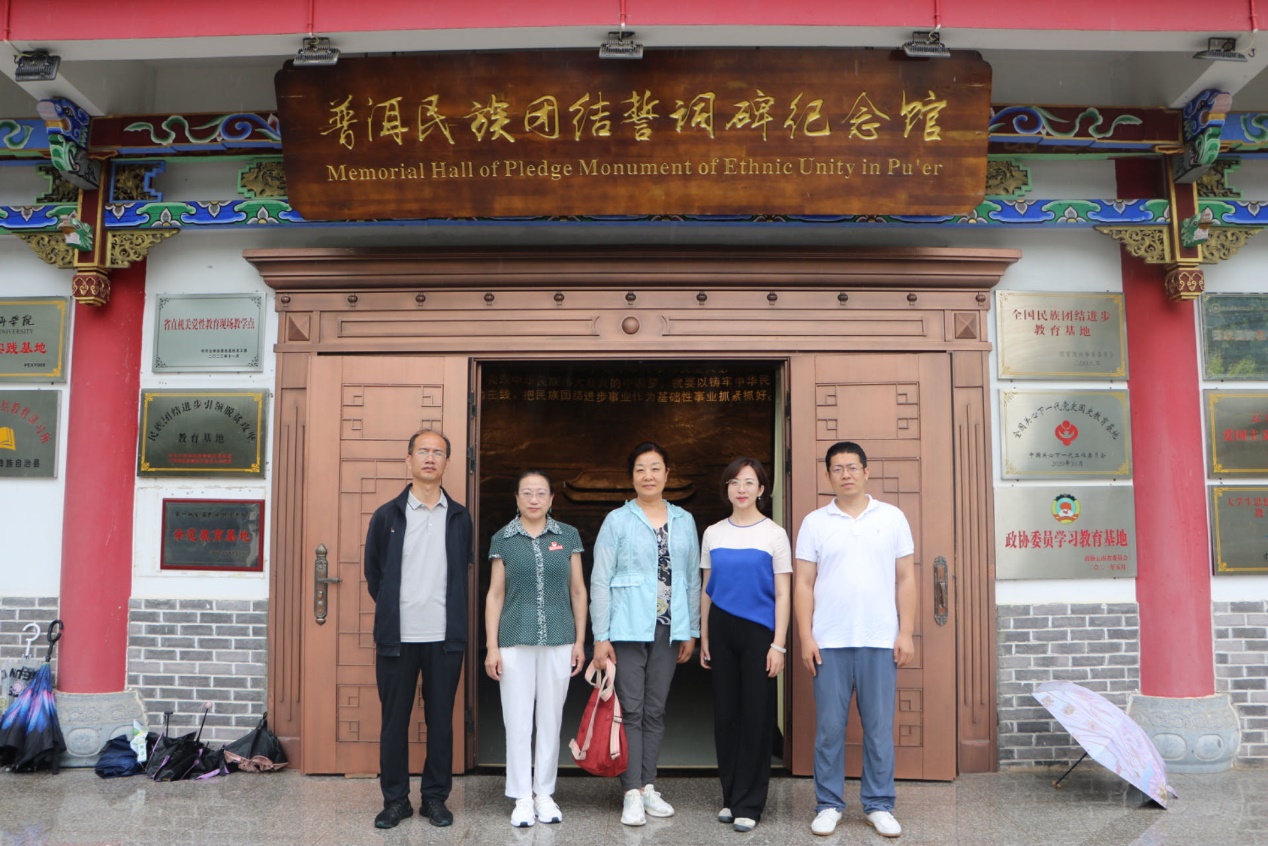 21日,研修班赴普洱市继续开展铸牢中华民族共同体意识主题教育实践活动。研修班一行前往滇西应用技术大学普洱茶学院看望了我校参加“银龄计划”支教退休教师何秋敏,学院领导对何老师三年来扎根云南服务祖国西部地区教育事业表示由衷的敬意。何老师在交流中提到,云南当地政府和学校高度重视“银龄计划”,在生活、工作等多方面为“银龄计划”教师提供支持与帮助,三年来的扎实工作有效促进了当地思政课教学水平的提升,也希望大家退休后能接力为边疆少数民族地区的思想政治教育发挥余热。