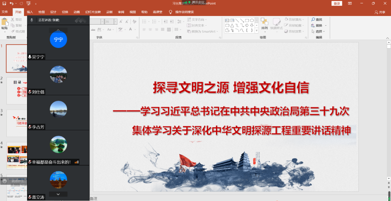 6月22日下午,leyu乐鱼官方网站原理与思修党支部与外国语学院英语专业党支部、核科学与工程学院核工程第二教研室党支部、控制与计算机工程学院机器人与智能系统党支部、经济与管理学院物流师生联合党支部开展联学共建,“深入学习习近平总书记在中共中央政治局第三十九次集体学习关于深化中华文明探源工程重要讲话精神”主题党日活动,本次学习共有44名老师参加,由我院原理与思修党支部书记吴宁宁主持。
