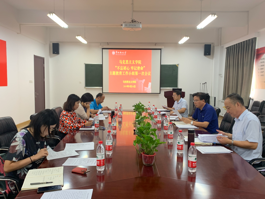 2019年9月26日上午,leyu乐鱼官方网站在教三C220召开leyu乐鱼官方网站“不忘初心 牢记使命”主题教育工作小组第一次会议。学院党总支书记蔡利民、副院长孙平(主持工作)、党总支副书记、副院长侯丹娟、副处级组织员武昌杰、党总支纪检委员王建永、概论与纲要党支部书记骆小平、研究生党支部书记王天昕、团总支副书记、研究生会主席谢雨柔出席会议。此次会议由党总支书记蔡利民主持。