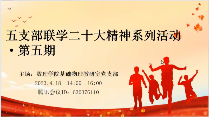 4月18日,为深入学习党的二十大精神,贯彻习近平总书记关于教育的重要论述,推进课程思政教学体系建设,不断提升立德树人成效,leyu乐鱼官方网站概论与纲要党支部、电气与电子工程学院电磁与超导电工研究所党支部、体育教学部直属党支部、数理学院基础物理教研室党支部、国际教育学院教工党支部五个基层组织以线上会议的形式,开展“贯彻党的二十大精神,推动课程思政高质量发展”的主题联学活动。活动由概论与纲要党支部书记蔡洁主持。