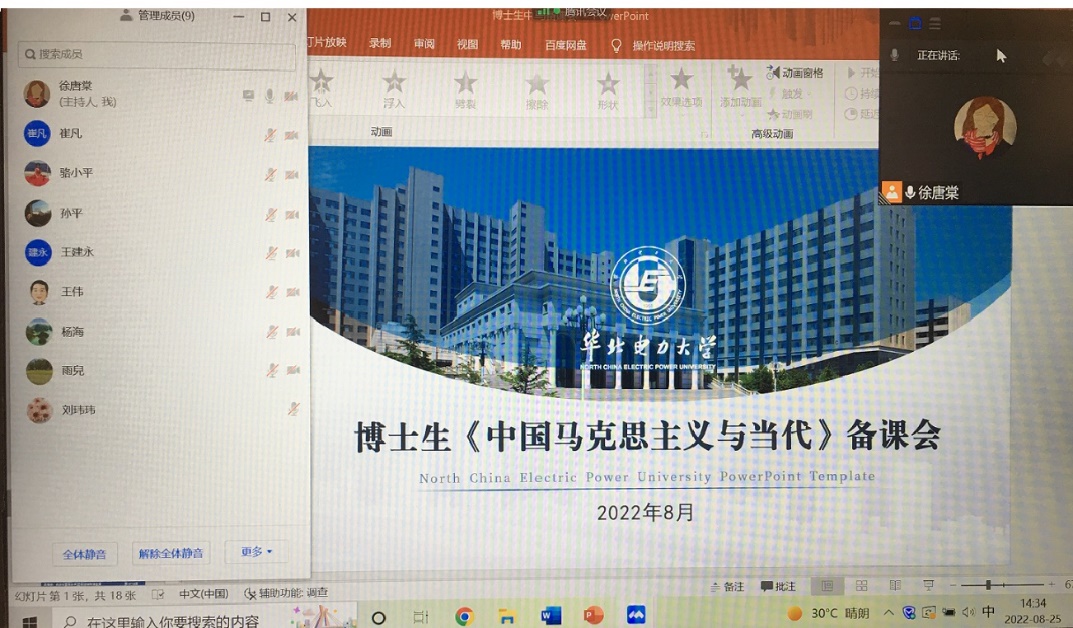 2022年8月24日、8月25日,leyu乐鱼官方网站研究生思政课教研室分别召开了《新时代中国特色社会主义理论与实践》、《中国马克思主义与当代》两门课程的备课会,马院党总支孙平书记,王伟院长和全体教研室教师参加会议,会议以线上形式举行。