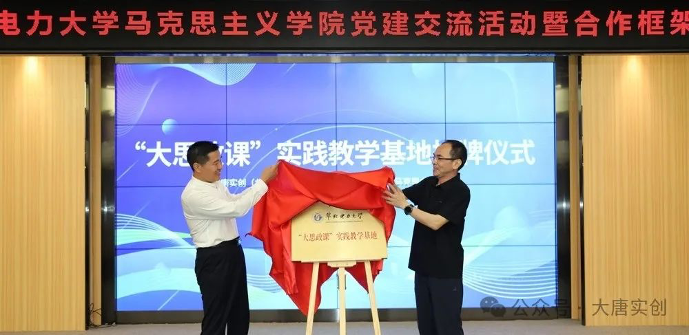 雷信生和王伟共同为“大思政课”实践教学基地揭牌。未来,我院将与大唐实创本着“友好合作、互惠互利、优势互补、共同发展”的原则,围绕党建共建、课题研究、教育教学、人才培养、师资培育、资源共享等方面的需求,依托优势资源和合作平台,开展全方位、多样化的校企合作,全面推进“大思政课”建设,推动合作框架下的思想同行与跨界互通,实现双方共赢发展。