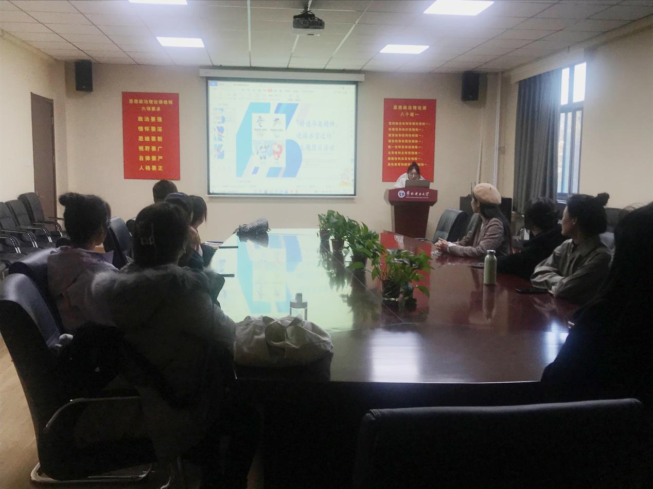 最后,团支书谭钰霏号召大家应当继续深入学习冰雪文化,积极体验冰雪运动、参与志愿服务、传递冬奥精神,为运动员们提供自己力所能及的帮助,以实际行为诠释“一起向未来”这句响亮的口号。