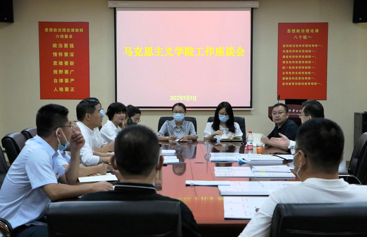 在第38个教师节来临之际,9月9日上午,校党委副书记孙传新到leyu乐鱼官方网站调研,慰问思政课教师代表并召开“大思政课”建设座谈会。参加座谈会的教师代表有leyu乐鱼官方网站院长、党总支副书记王伟,党总支副书记武昌杰,党总支委员、各教研室主任、教工党支部书记,教授代表等。座谈会由院长王伟主持。