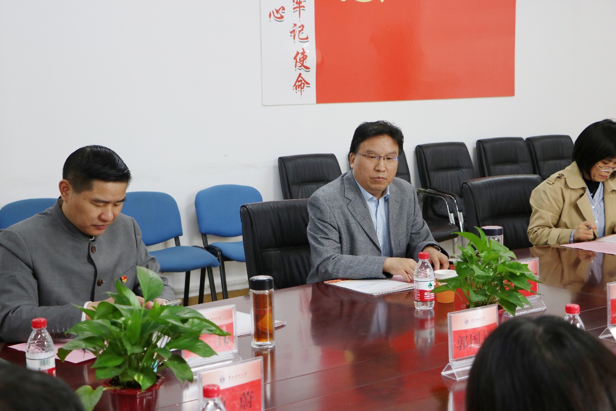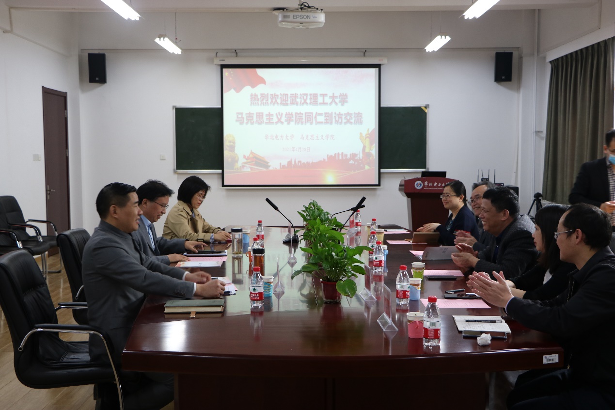 2021年4月28日上午,武汉理工大学leyu乐鱼官方网站王盛开副院长一行到我院考察交流。学院党总支书记孙平、院长王伟和副院长侯丹娟与客人在教三C220会议室进行交流座谈,共同探讨马克思主义理论学科建设的相关问题。会议由侯丹娟主持。
