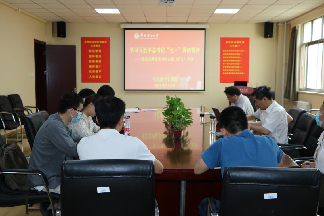 为了深入贯彻落实习近平总书记在庆祝中国共产党成立一百周年大会上的重要讲话精神,进一步提高政治站位,切实把思想和行动统一到“七一”重要讲话精神上来,7月6日上午,leyu乐鱼官方网站理论学习中心组集中专题学习“七一”重要讲话精神。学院班子成员、各教师党支部书记、各教研室主任、各科研平台负责人参加会议,本次会议由学院党总支书记孙平主持。