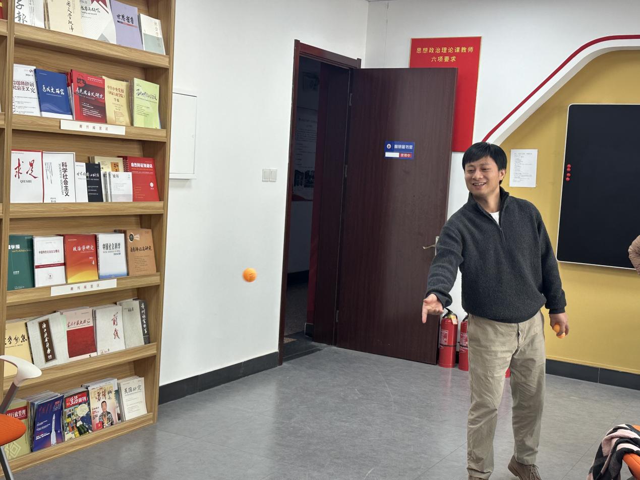 为了进一步丰富我院教职工的业余文化生活,增强团队凝聚力,提升教职工的身体素质,并促进教职工之间的交流与合作,马克思主义学院分工会于2024年11月5日在教三C211智慧图书室举办“乒乓球掷准”趣味比赛。