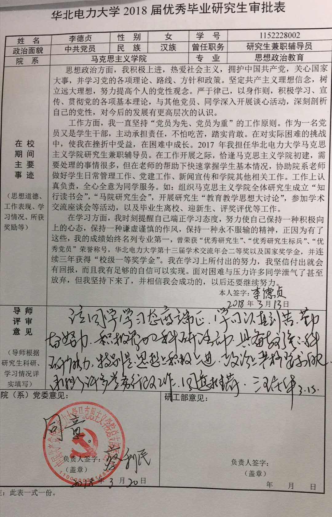 根据学校《关于评选2018届春季优秀毕业的通知》,经学院审查评选,推选李德贞为2018届校级优秀毕业生,现将结果进行公示。